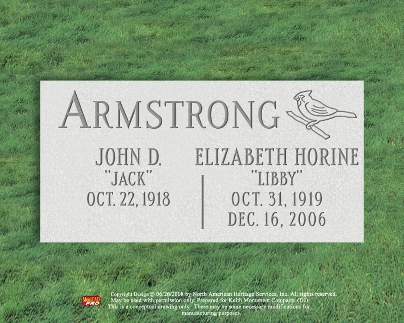Flat Grass markers are set flush to the ground. Their limited size, however, does not eliminate the opportunity to personalize this marker. The size and shape are more set than the other markers, but the choice of color remains, as well as opting to use custom design or shape or a unique inscription.